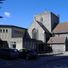 The building combines its original tower, transepts, and sanctuary with a reconstructed nave built on a north-south axis in 1970.