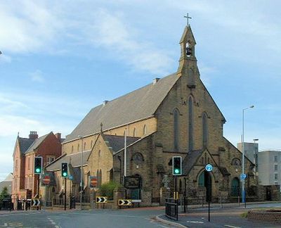 The church opened its doors on June 5, 1870, designed by local architect Thomas Mitchell to serve the growing Irish community working in Oldham's cotton mills.