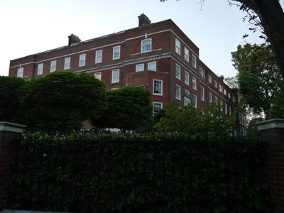 Architects Henry Percy Adams and Charles Holden designed this residential complex in the early twentieth century, incorporating traditional British architectural elements.