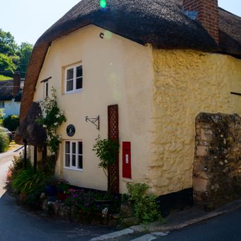 Beehive, thatched cottage in Branscombe, East Devon, Devon, UK