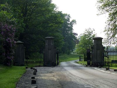 Gate piers and railings circa 5 yards to north east of Stone Lodge