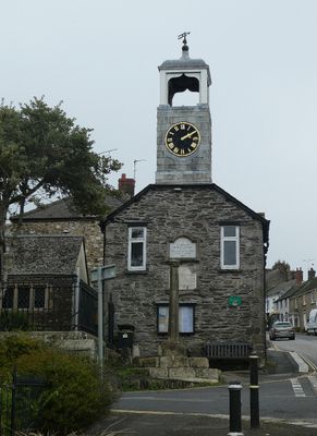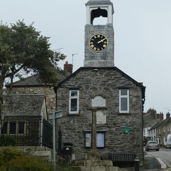 Town Hall And Clock Tower, Grade II listed town hall with clock tower in Grampound with Creed, England.