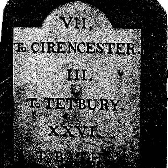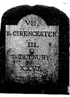 Milestone, opp. cottages 40yds W of Rodmarton turning.