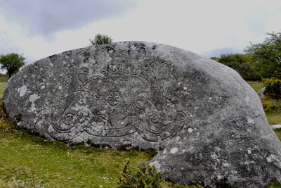 Jubilee Rock, Carved granite boulder on Pendrift Downs, Blisland, England.