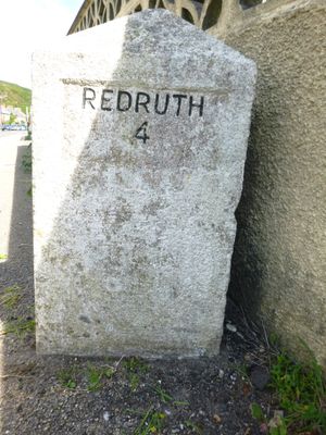 Milepost Opposite Methodist Church, milestone in Portreath, Cornwall, UK