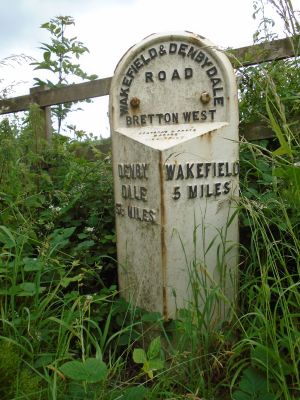 Milepost Approximately 1000 Metres North East Of West Bretton Traffic Island, milestone in West Bretton, Wakefield, West Yorkshire, UK