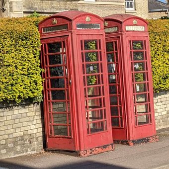 Pair Of K6 Telephone Kiosks To East Of Number 2, K6 telephone box in Leighton-Linslade, Central Bedfordshire, Bedfordshire, UK