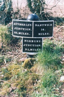 Shropshire Union Canal Direction Post About 115 Metres South East Of Bridge Number 59, milestone in Loggerheads, Newcastle-under-Lyme, Staffordshire, UK