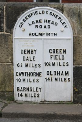 Mile Post, Hollowgate Bridge, milestone in Holme Valley, Kirklees, West Yorkshire, UK