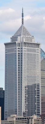 The building, completed in 1990, stands on the former location of Philadelphia's Greyhound bus terminal and was initially planned to be 880 feet tall.