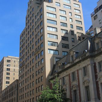 Located at 1049 Fifth Avenue, this 23-story brick building stands near the Neue Gallery and faces Central Park in Manhattan's Upper East Side.