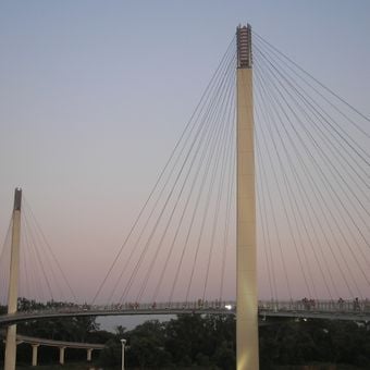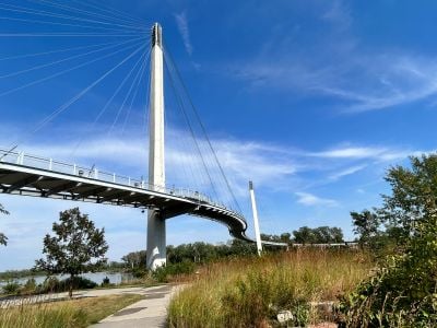 Bob Kerrey Pedestrian Bridge, Cable-stayed footbridge across Missouri River between Omaha, Nebraska and Council Bluffs, Iowa.