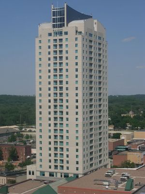 Completed in 2004, this residential tower became the tallest building constructed in a United States city with less than 200,000 metropolitan inhabitants.