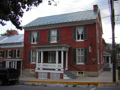 The Conrad Shindler House is located on West German Street and displays architectural features from the late 18th century with stone walls and period details. The building has been preserved and now contains collections and research materials focused on Civil War history.