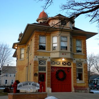 Fire Barn 5 features Classical Revival architecture with red brick walls, arched windows, and symmetrical design elements throughout the two-story structure.