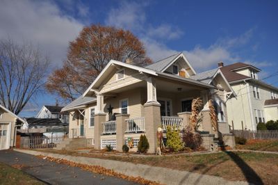 The Frank Wilbur House displays three distinct gables and an L-shaped entrance porch with posts mounted on yellow-brick piers at 1273 Park Avenue.