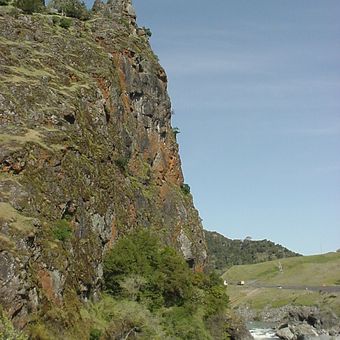 The location next to U.S. Route 101 provides access points for rock climbing activities and whitewater kayaking in the Russian River.
