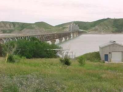 Construction of the current Four Bears Bridge began in 2003 and finished in 2005, replacing an earlier structure from 1934 that was relocated due to Garrison Dam.