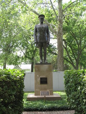 The garden includes a Wall of Honor listing veterans' names and displays a life-size statue of General Pershing created by sculptor Carl Mose in the 1950s.