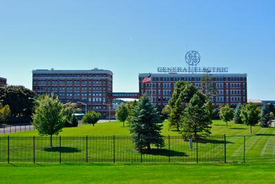 The General Electric Research Laboratory occupies a complex of buildings with red brick walls and white stone trims near the Mohawk River.