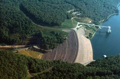 Lake Moomaw, formed by the dam, holds 40 billion US gallons of water and covers an area of 3.9 square miles.