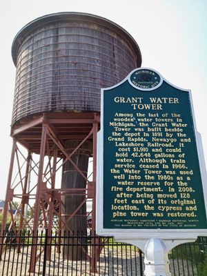 Grant Depot and Water Tower, Historic railway depot and wooden water tower in Grant, Michigan.