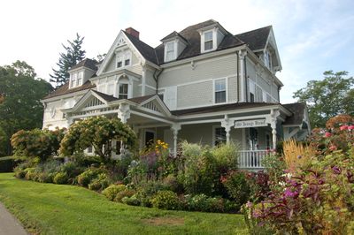The main structure incorporates decorative shingling and wooden framework elements, making it the primary example of Stick architecture in Westport.