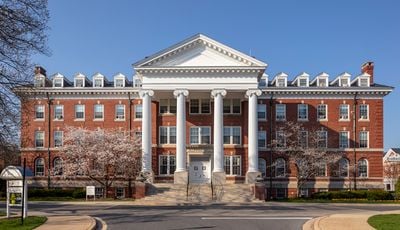Hood College spans across a 50-acre campus with Georgian-style architecture buildings, undergraduate classrooms, research laboratories, and residential halls for students.