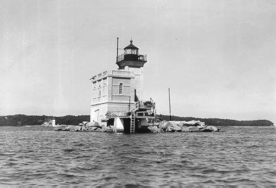 The concrete foundation was built on land and floated to its final location, making it the oldest reinforced concrete lighthouse on the East Coast.