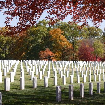 Jefferson Barracks National Cemetery is a national cemetery in St. Louis County, Missouri, where military veterans and their family members are buried. The grounds feature rows of white headstones, monuments, and well-maintained green spaces that reflect the scope of those remembered here.
