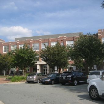 James B. Dudley High School is a neoclassical high school building located in North Carolina. The structure displays the characteristic features of this architectural style, including columned entrances and balanced facade proportions.