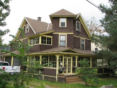 The Kennedy Cottage features traditional architectural elements with a symmetrical facade, wooden construction, and period-specific design details throughout its exterior and interior spaces.