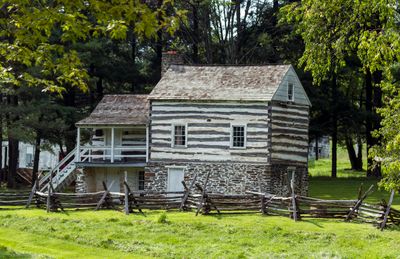 Kennedy Farm is a two-story farmhouse with stone, brick, and log construction located in Sharpsburg, Washington County along Chestnut Grove Road. The building displays typical rural architecture of the 1800s with a restored main house and surrounding farm structures on its grounds.