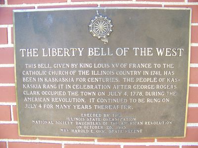 The Kaskaskia Bell State Memorial contains a 140-pound bronze bell cast in La Rochelle, France, displayed in a brick building constructed in 1948.