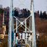 The bridge maintains its original structural elements from 1921, demonstrating the durability of suspension bridge engineering from that period.