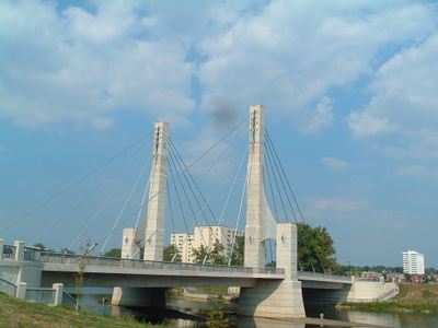Lane Avenue Bridge is a cable-stayed structure crossing the Olentangy River at Ohio State University, carrying vehicle traffic and pedestrians across the waterway. The bridge links different campus areas and serves thousands of daily users from the university community.