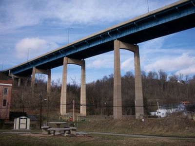 The bridge carries US Route 40 traffic high above the main streets of West Brownsville, with a 3-mile freeway segment extending from its western bank.