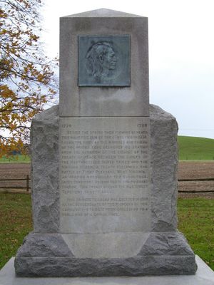 The memorial grounds include monuments dedicated to Native American heritage and early Ohio settlers, representing relations between both communities in the 18th century.