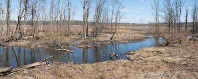 Lord Stirling Park spans 950 acres along the Passaic River, containing swamps, fields, forests, brooks, marshes, and meadows within Somerset County.