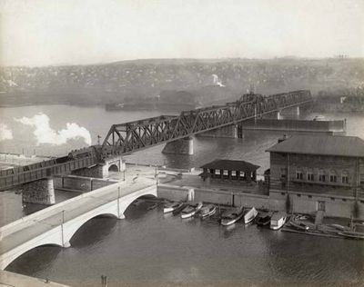 The Hudson River Bridge Company completed this crossing in 1871, making it the second rail bridge at Albany to serve expanding transportation needs. The design avoided timber elements after the Troy fire of 1862 highlighted the dangers of wooden construction.