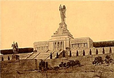 The National American Indian Memorial was planned as a 580-foot-tall structure overlooking New York Harbor, featuring a grand statue of a Native American warrior.