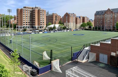 Cooper Field features artificial turf and permanent seating facilities that accommodate 3,750 spectators for various athletic competitions at Georgetown University.