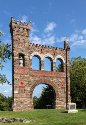 The memorial stands within Gathland State Park near Burkittsville, offering access through maintained pathways and National Park Service information resources.