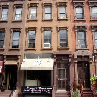 The New York Amsterdam News Building at 2293 Seventh Avenue features early 20th-century architectural elements with brick facades and multiple residential units.
