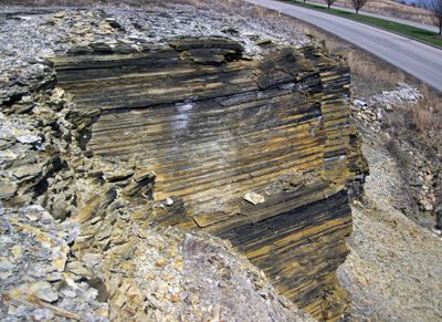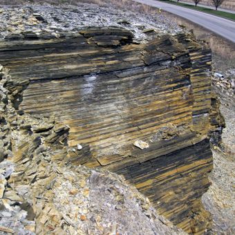 New Albany Shale, Devonian geological formation in Illinois Basin, US.