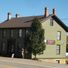 The structure maintains its original architectural elements, including a central entrance with sidelights, a transom, and an exposed basement on the riverside.