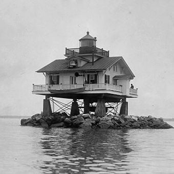 Constructed in 1886, the lighthouse marked the channel to Cape Charles and underwent major structural modifications in 1918 when its piles received concrete reinforcement.