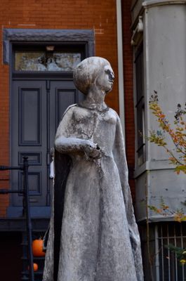 The statue was created in 1971 by sculptor John Cavanaugh to honor the adopted daughter of Secretary of State William H. Seward. It commemorates a figure from the 19th century whose family played a notable role in American affairs.