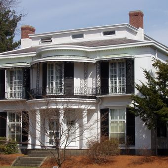 The Oliver Hastings House features a hip roof with a central monitor, broad pilasters at corners, and a rounded portico with Corinthian columns.