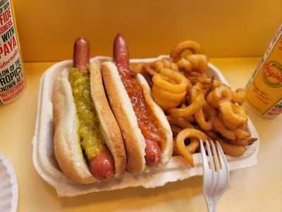 The restaurant was founded in 1932 by Constantine Poulos, starting as a tropical juice bar before hot dogs were added to match the neighborhood's German-American preferences. The pairing grew from a practical business decision that brought together the local community's different food tastes.